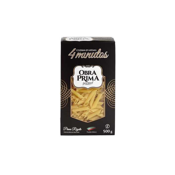 O Penne Rigate 4 Minutos Obra Prima Gourmet é feito com sêmola de trigo duro e água, trazendo um sabor autêntico e uma textura firme. Seu formato cilíndrico e estriado é ideal para prender molhos mais espessos, tornando-o perfeito para receitas com molhos de tomate, queijos ou carnes.