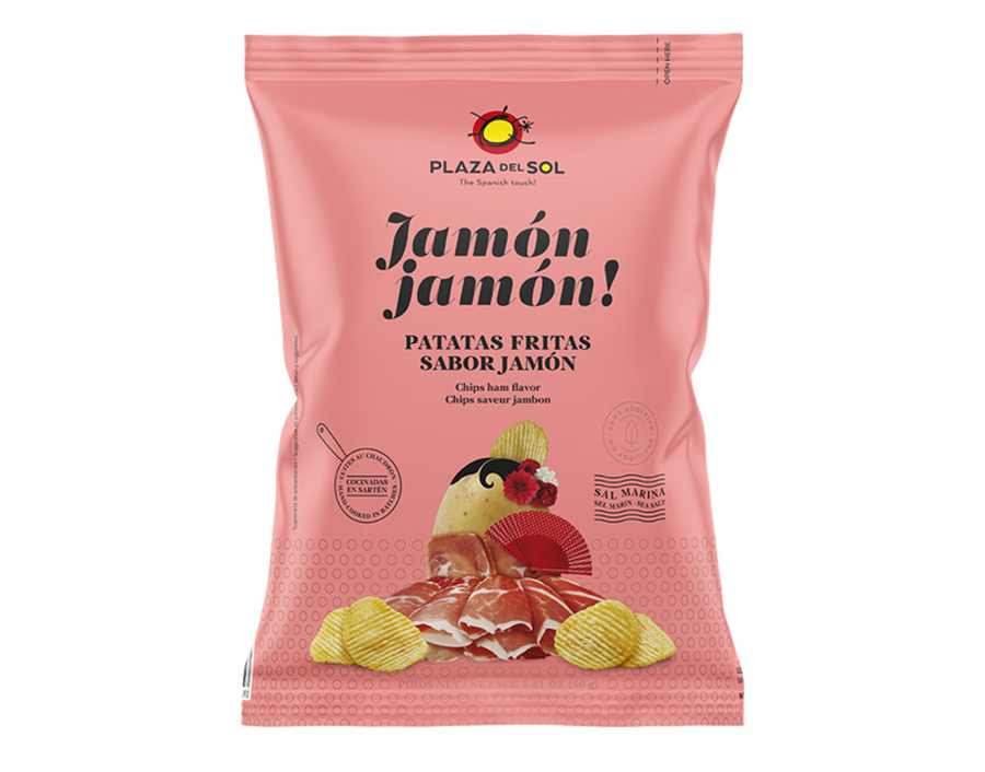 Batatas, óleo de girassol, azeite de oliva, aroma de presunto