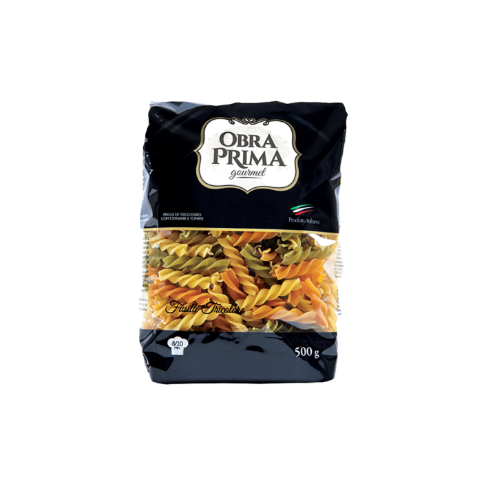 O Fusilli Tricolore Obra Prima Gourmet é uma massa vibrante e colorida, feita com sêmola de trigo duro e enriquecida com espinafre e tomate desidratados, oferecendo três cores e sabores únicos em cada garfada. Seu formato espiralado é ideal para prender molhos mais espessos, como cremosos, à base de tomate ou pesto, adicionando um toque especial aos seus pratos.